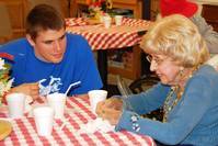 I estimate that we here at Roosevelt Academy have fed at least 750 seniors, their families, and our students over the past four years. Talk about barbecue bringing people together! And as great as it is that we are able to spend time with and show appreciation to the seniors of our community, it is equally as great that we are able to teach these important values to the students of our school. To say that many of our students come from less than desirable home situations is an understatement, so watching them come alive, interact so well, and show compassion during Senior Q is a magical thing. All of us agreed that this year was particularly special for some unknown reason. These kids, who usually have short attention spans and come from an instant gratification culture, actually spent a couple of hours sitting down at the dinner table with a stranger old enough to be their great grand parent talking, laughing, and sharing. The three other teachers who went with me and I just watched with pride as our kids exceeded our expectations with their social skills and compassion. Of course the seniors rose to the occasion as well, sharing the stories of their lives and experiences. It was obvious that they were enjoying the time by their smiles and laughter.